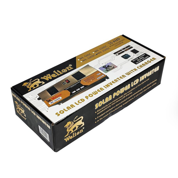 پاور اینورتر 2000 وات برند ویلیون (Welion) برای تبدیل ولتاژ 12 ولت به 220 ولت با فرکانس 50 هرتز. مجهز به شارژر 10 آمپر جهت شارژ باتری در صورت دسترسی به برق شهر یا دیزل ژنراتور، طراحی منحصر به فرد با بدنه آلومنیومی برای بهبود خنکسازی و افزایش راندمان دستگاه. مجهز به دو عدد پورت USB جهت شارژ موبایل و تبلت، مجهز به کابل انبری باتری، مجهز به فن توربو اتوماتیک ، مجهز به دو عدد خروجی 220 ولت مجزا، مجهز به حفاظت در برابر اضافه بار و اضافه حرارت، مجهز به حفاظت در برابر سطح ولتاژ بالا یا پایین باتری، مجهز به نمایشگر گرافیکی برای نمایش پارامترهای کلیدی اینورتر، مجهز به قطع کن اتوماتیک پس از شارژ کامل باتری. زمان سوئیچ بسیار کم از برق شهر به باتری در زمان قطعی برق شبکه.